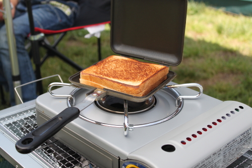 昼ごはんは持ってきたカセットコンロでホットサンド!